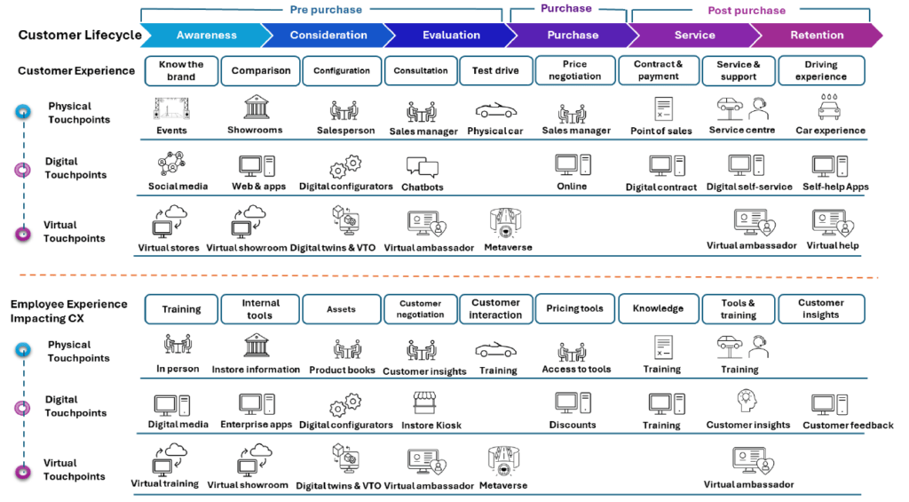 During the ENVISAGE stage, Vation can help you leverage Customer Experience Model (CEM), a framework designed to deliver exceptional customer, employee, and multi-experience outcomes. This will enable you to discover, design and deliver three-dimensional journeys for your customers and employees. By prioritizing these elements, Vation ensures a holistic approach that drives business success.