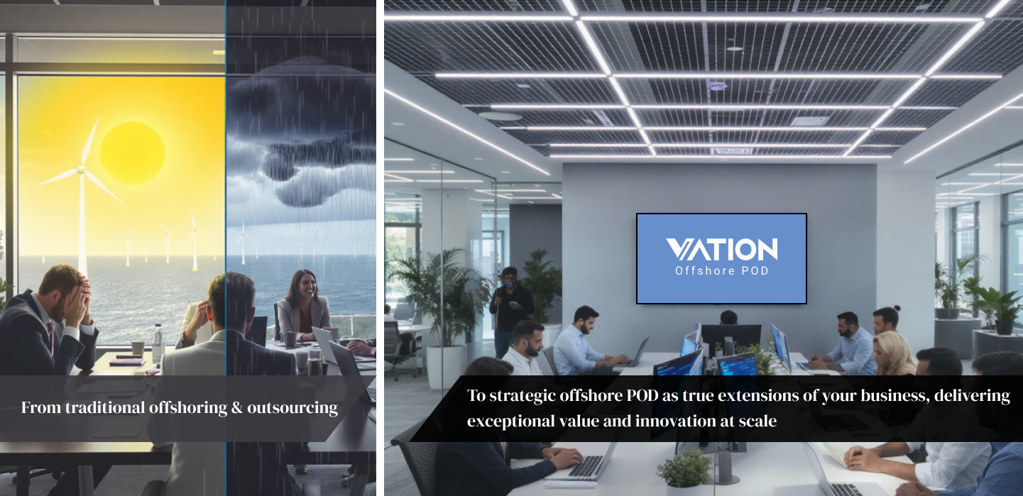 Vation’s GCCs, powered by our unique POD-driven and ‘POD as BOT’ model, help you build high-performance, AI-enabled teams that deliver unified CX, EX, and MX outcomes.